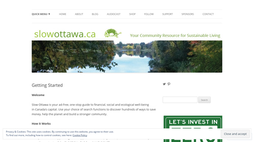 USAWelcome Slow Ottawa is your ad-free, one-stop guide to financial, social and ecological well-being in Canada’s capital. Use your choice of search functions to discover hundreds of ways to save money, help the planet and build a stronger community. How it Works On cursor-based devices (and on some touch screens) you can navigate by hovering over the QUICK MENU appearing…