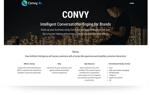 Convy creates Omnichannel Enterprise BOTs to optimize the interactions between customers and brands. Scale up your business using Convy, the artificial intelligence that acts like a human helping enterprises to better interact with their clients.