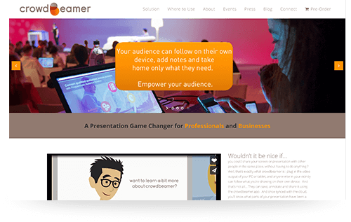 Crowdbeamer is a product from RORYCO, a company founded to provide solutions for all professionals who are involved in presenting information to a live audience.