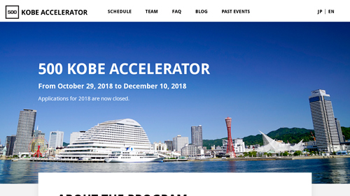 Japan500 Startups + City of Kobe present. 500 KOBE ACCELERATOR Now accepting applications from Japanese and International Startups!