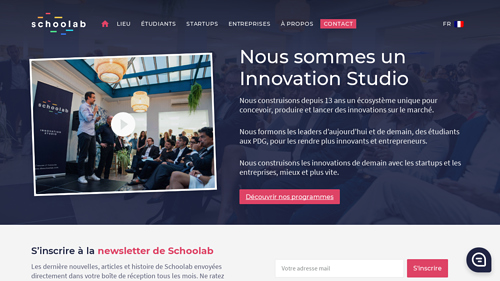 FranceNous sommes un Innovation Studio. Nous construisons depuis 10 ans un écosystème unique pour concevoir, produire et lancer des innovations sur le marché. Nous formons les leaders dâaujourdâhui et de demain, des étudiants aux PDG, pour les rendre plus innovants et entrepreneurs.