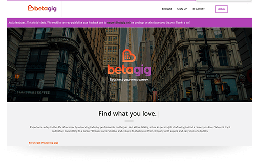 Betagig is a new app that is streamlining the process of job shadowing, allowing students and recent grads to discover opportunities and jobs they didn’t know existed.