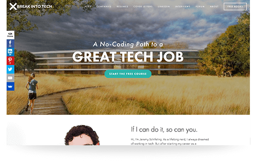Everything you need to land the perfect tech job. Get step-by-step coaching on choosing the right roles, companies, and application strategies. No coding skills required!