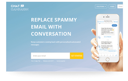 You can build two-way automated marketing messages at ChatCampaign. Easily customize messages with drag and drop, and publish with one click to your brand’s chat channels – Facebook Messenger / LINE / Telegram.