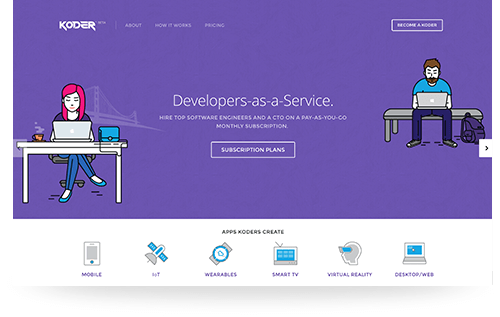 Koder is a monthly subscription service that connects companies with teams of elite developers, designers, CTOs and Product Managers to deliver results.