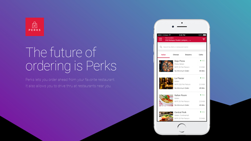Perks lets you order ahead from your favorite restaurant and also allows you to drive thru at restaurants near you.