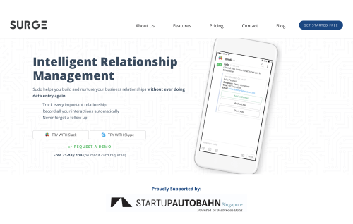 Surge is a Singapore based startup that is making it trivial for sales people to keep their CRM data up-to-date. They help you build and nurture your business relationships without ever doing data entry again.